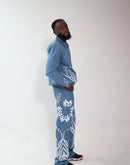 The MM Stonewashed Denim Set is a bold fusion of craftsmanship, culture, and modern street-luxury. Designed in premium stonewashed denim, this set features Maison Makeeva’s signature DTS pattern prints and our iconic M logo, arranged like abstract floral motifs across both the jacket and trumpet pants.
