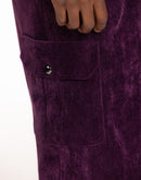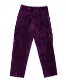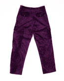 Sophisticated luxurious couture velour pant feature two cargo pockets on the sides, adding a touch of utility and style to the design. The front zipper closure provides a modern touch, while the back right welt pocket with snaps offers a refined finish.