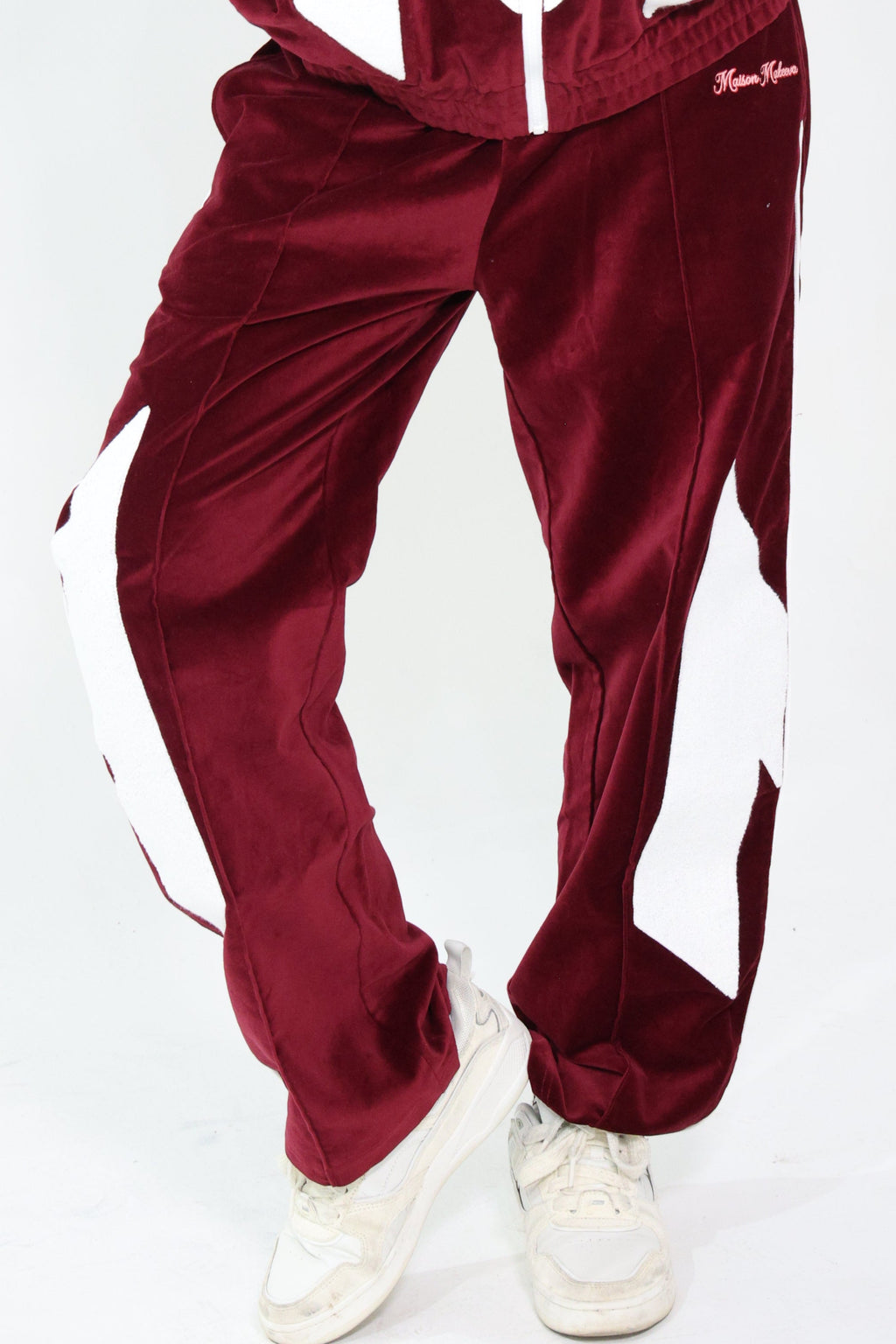 Comfort, culture, and craftsmanship in motion.The MM NTOUBE-302 Track Pants are made from premium velvet fabric, offering a soft, luxurious feel with a bold streetwear edge. Along the side seams of both legs, the signature Mais...