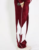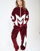 The MM NTOUBE-302 Track Pants are made from premium velvet fabric, offering a soft, luxurious feel with a bold streetwear edge. Along the side seams of both legs, the signature Maison Makeeva “M” logo appears in rich chenille, adding texture, depth, and identity to the silhouette.